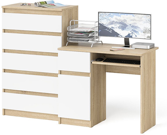 Мори Стол компьютерный МС-1 левый + Комод МК700.5, цвет дуб сонома/белый, ШхГхВ 160,4х50х114 см., выдвижной ящик слева, НЕ универсальная сборка