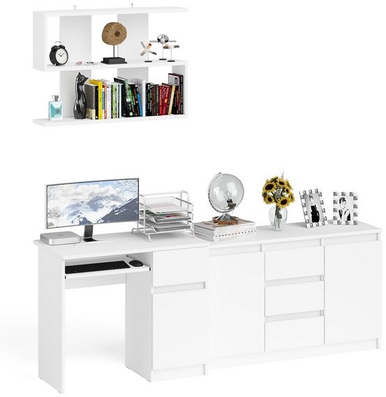 Мори Стол компьютерный МС-1 правый + Комод МК1200.3 + Полка 900, цвет белый, ШхГхВ 210,4х50х209,6 см., НЕ универсальная сборка